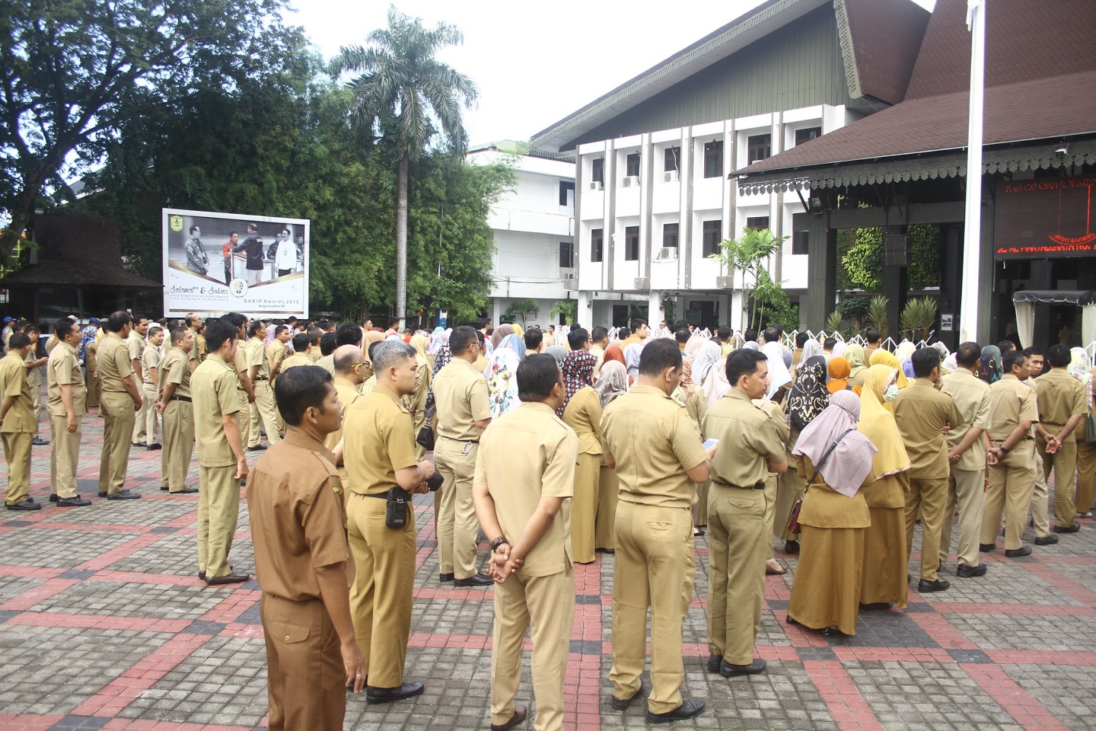 BANJARMASIN - Wakil Walikota Banjarmasin H Hermansyah menegaskan, sesuai aturan PKPU dan Perwali Kota Banjarmasin, Alat Peraga Kampanye ( APK) tidak boleh dipasang pada fasilitas umum seperti, tiang listrik, tiang telepon, drainase, fasilitas pendidikan, keagamaan, atau dipasang lokasi yang tidak berizin. Karena itu, untuk mengurangi pelanggaran yang dilakukan para kontestan pemilu, penindakan pelanggaran tersebut dapat dilakukan sesuai dengan aturan dan mekanisme yang ada dalam Perda dan Perwali. "Sehingga aksi penertiban APK yang dilakukan berjalan dengan aman dan lancar," ujarnya, saat menyampaikan arahannya dalam kegiatan Apel Gabungan Tim Koordinasi Penertiban Alat Peraga Kampanye (APK) Pemilu di Halaman Balai Kota Banjarmasin, Selasa (05/03).
